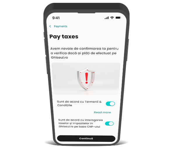 Fără platforme separate, fără copy‑paste de IBAN, fără stres. Găsești Pay Tax în app sub meniul Plăți.