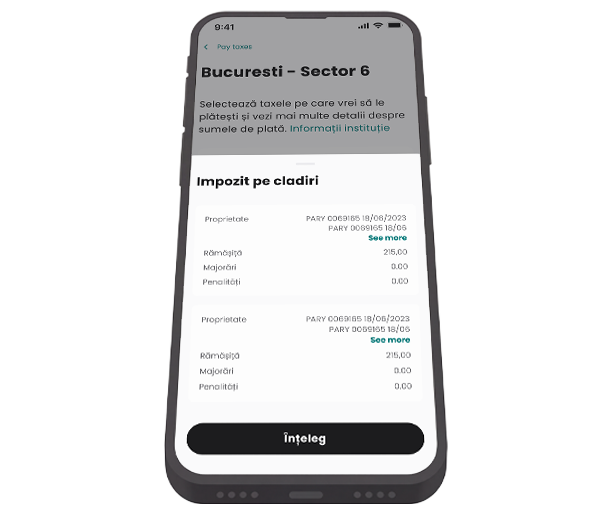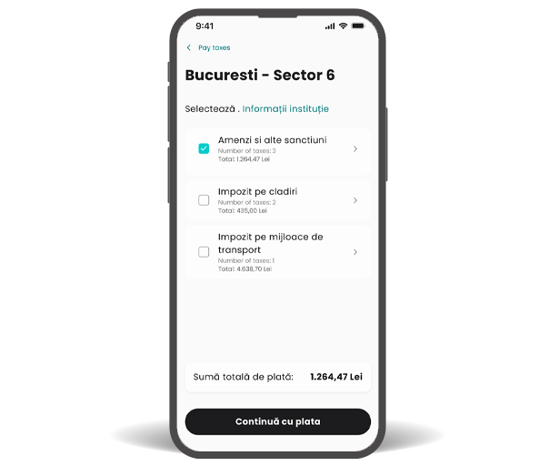 Fără platforme separate, fără copy‑paste de IBAN, fără stres. Găsești Pay Tax în app sub meniul Plăți.